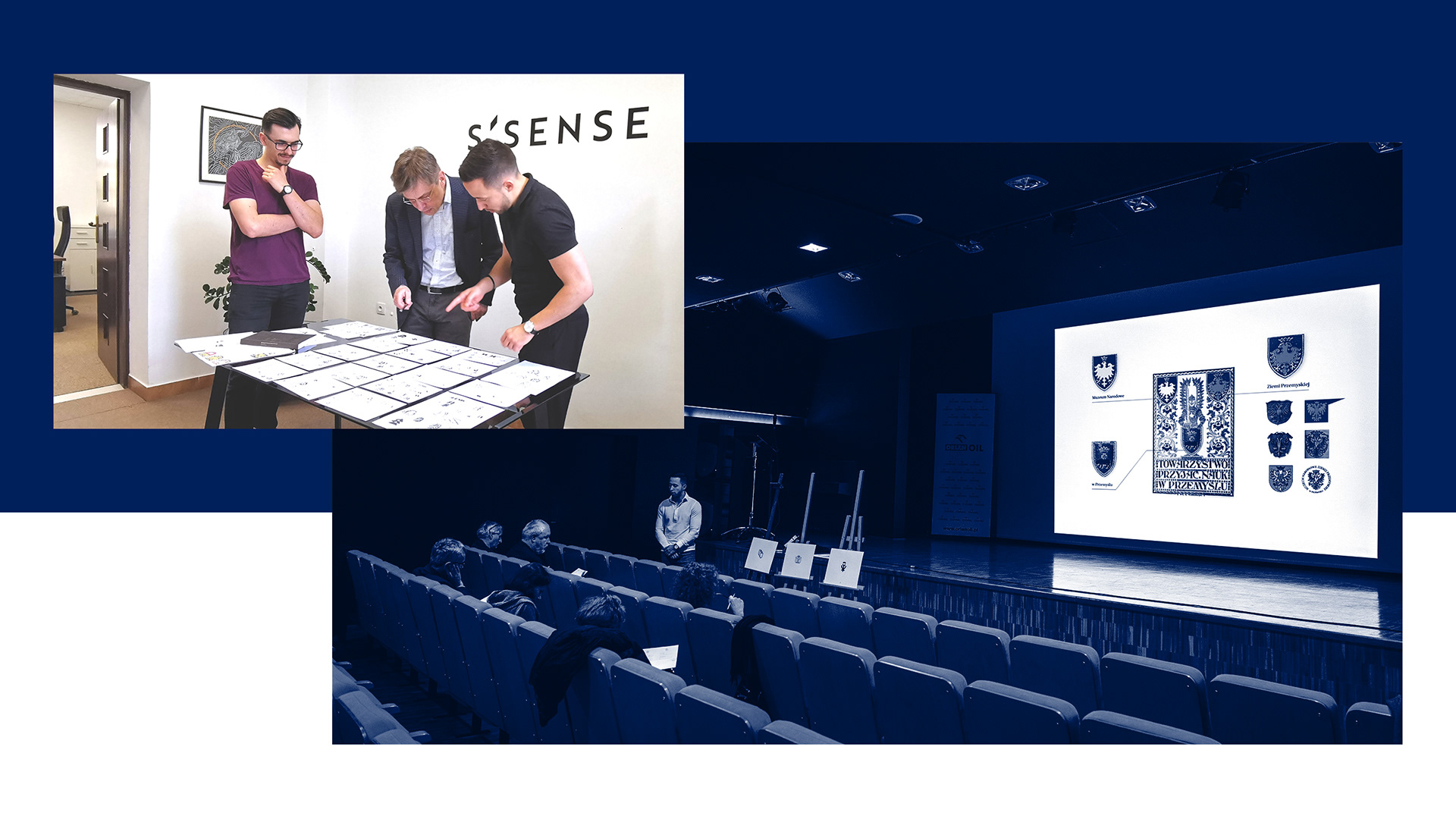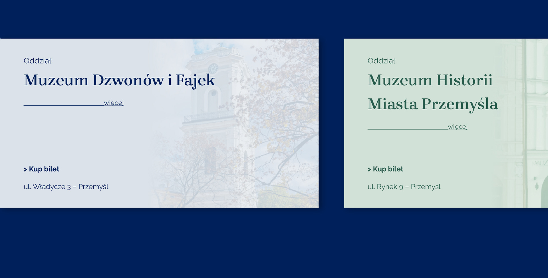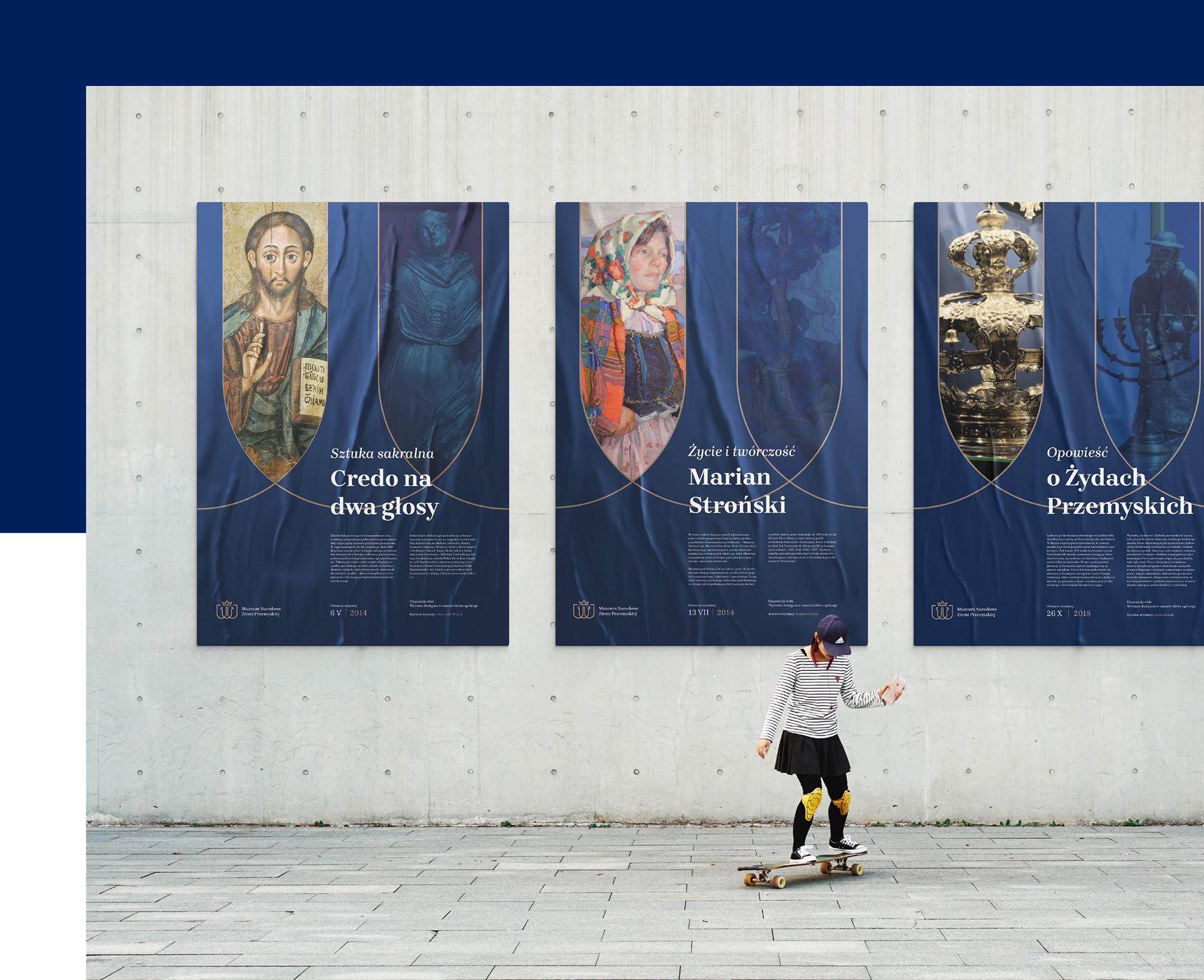The resulting logo defined the concept of the leading graphic theme, which is based on the multiplication of shields. The selected colors result from coherent elements - the colors of the coat of arms of the Przemyśl Land and the City of Przemyśl. The combination of navy-blue color and golden details skillfully harmonizes with the museum's historical and contemporary activities.